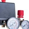 Реле давления MDR_3/11_R3/6.3_GDA_AAAA_090A110_CHI_HXX CONDOR WERKE 100056980 предназначено для компрессоров. Применяется для контроля уровня подаваемого воздуха. Имеет трехфазное и однофазное подключение. Максимальная мощность электродвигателя — 3 кВт. Максимальное давление отключения — 11 бар. Класс защиты — IP 54. Фланец — 1/2″, 4L. Реле давления оснащено разгрузочным клапаном для облегчения пуска компрессора после остановки. Тепловое реле для защиты электродвигателя — 6.3А.
