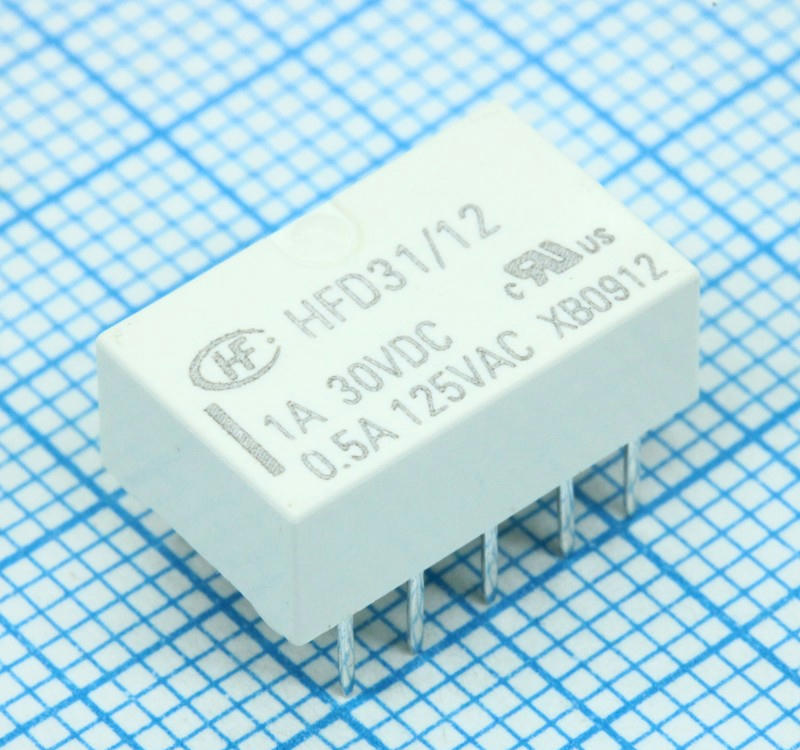 HFD31/12, Реле: электромагнитное, DPDT, Uобмотки: 12ВDC, 0,5A/125ВAC, 2А