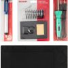 Миниатюрная паяльная станция ZD-927 предназначена для широкого применения в быту и на производстве. Основные особенности: Сверхкомпактный дизайн. Температуру можно плавно регулировать в диапазоне 100…450°C с помощью потенциометра. Миниатюрный низковольтный паяльник с возможностью замены жала. На корпусе есть держатель для паяльника. Технические характеристики: Напряжение питания: 220-240 В 50/60 Гц. Паяльник: 12 В/ 8 Вт, керамический нагреватель. Диапазон температур паяльника: 100…450°C. Масса: 0.75 кг